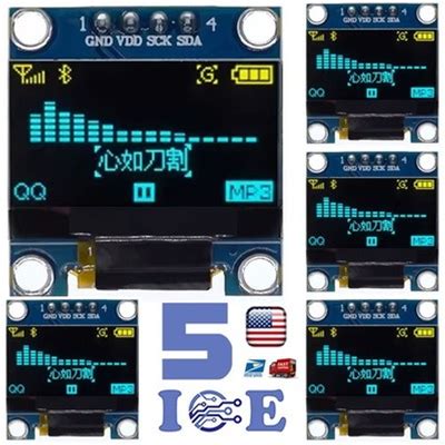5Pcs 0.96" I2c Iic 128X64 Led Oled Lcd Display Arduino Yellow Blue