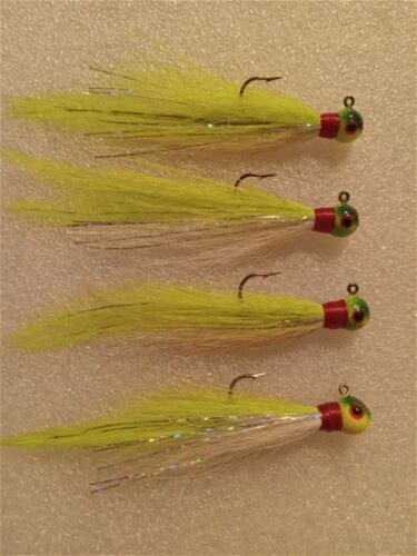 Smoo's Custom Jigs (4) 1/8 Oz. Bucktail Hair Jigs Chartreuse/White 869