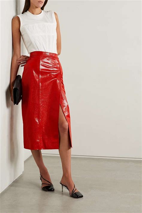 Gucci Python Print Red Leather Midi Skirt- With Tags - Rrp$4,900