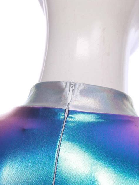 Women Halloween Alien Cosplay Costume Front Zip Metallic Shiny A-Line