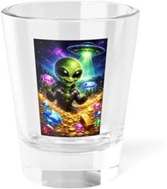 Cute Alien With Ufo And Gems Shot Glass | 1.5Oz
